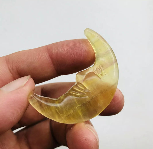 Yellow fluorite semiprecious natural gemstone reiki healing gemstone crescent moon lunar