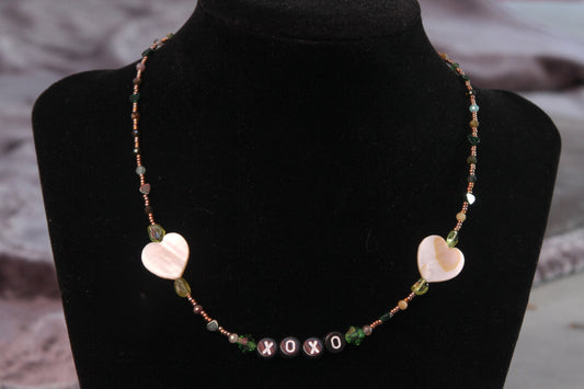Women's Mother of Pearl and Gemstone "XOXO" Choker Necklace