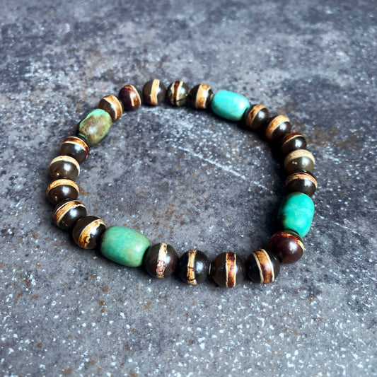 Men's Tibetan Agate & Turquoise Gemstone Stretch Bracelet