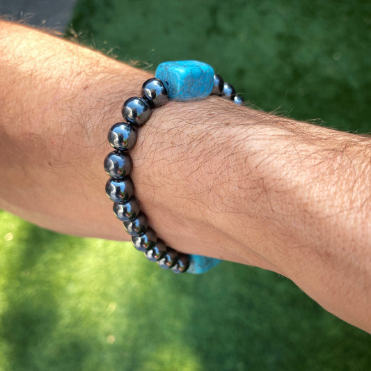 Men's Hematite and Turquoise howlite Gemstone bracelet