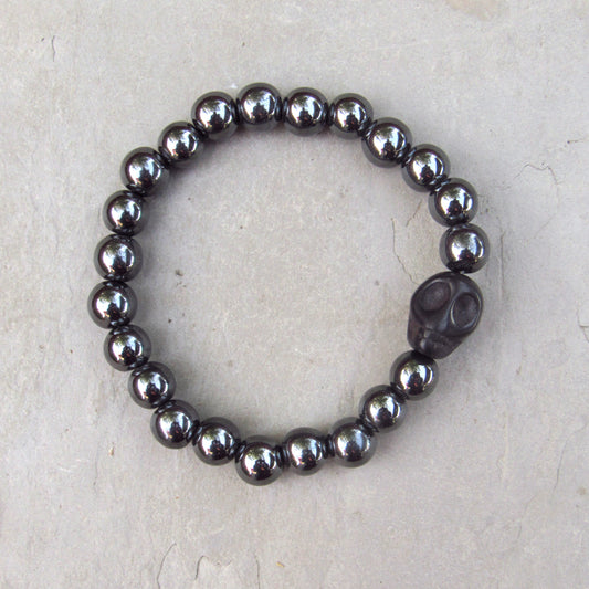 Men’s Hematite And Blue Howlite gemstone Skull Bracelet