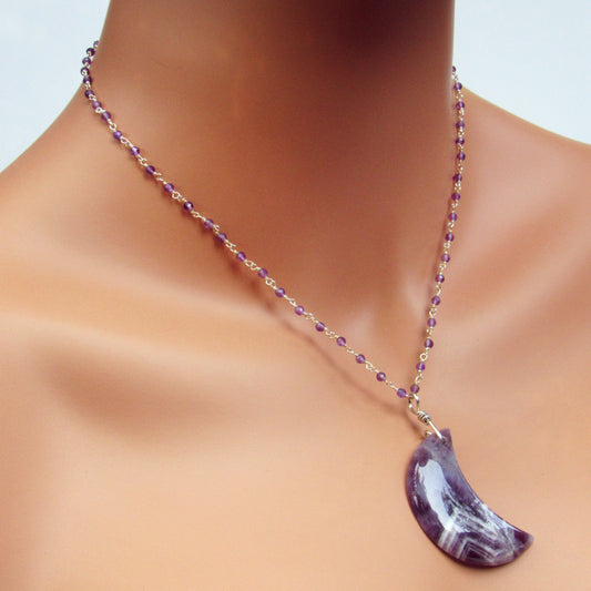 Amethyst Moon on sterling silver wrapped amethyst chain necklace