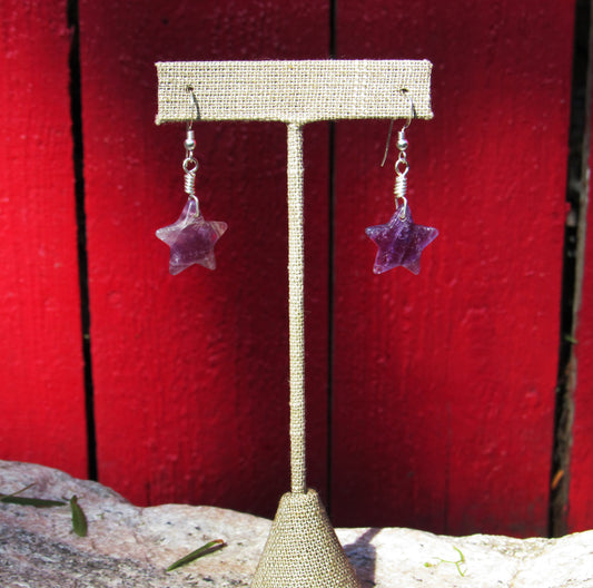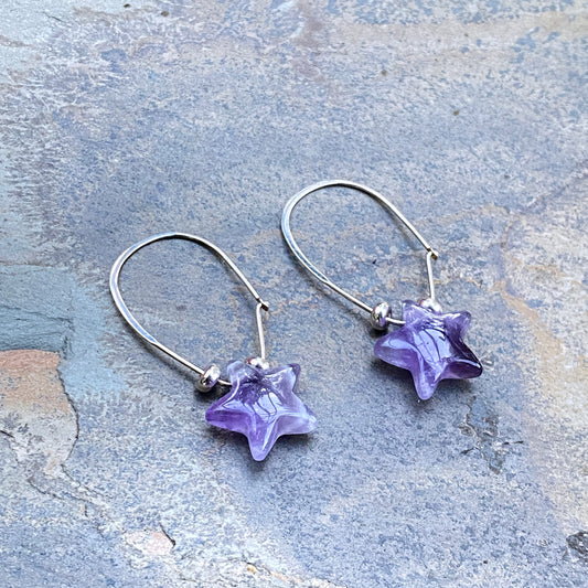 Amethyst Star Hand Wrapped in Sterling Silver Drop Earrings