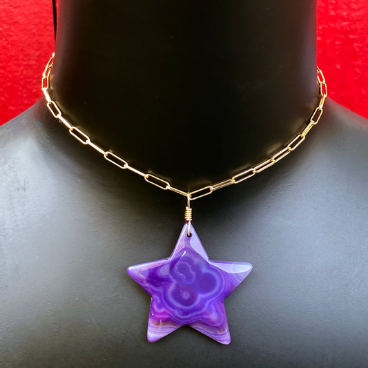 Purple Agate Star Pendant on 14 Kt gf Chain w/ Amethyst Gemstones