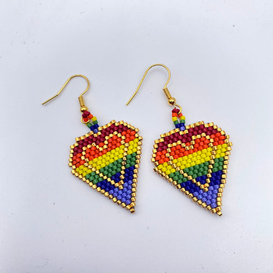 Beaded Glass Heart Pride Rainbow Earrings