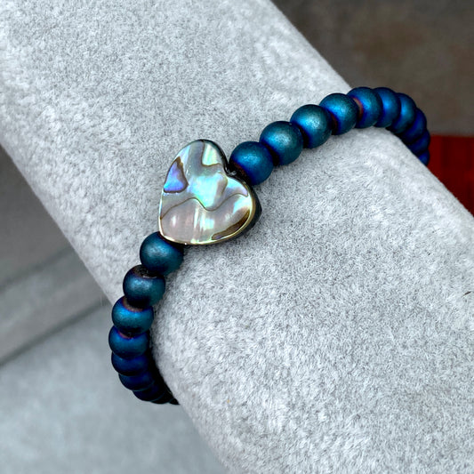 Druzy Agate And Abalone Heart Beaded Bracelet