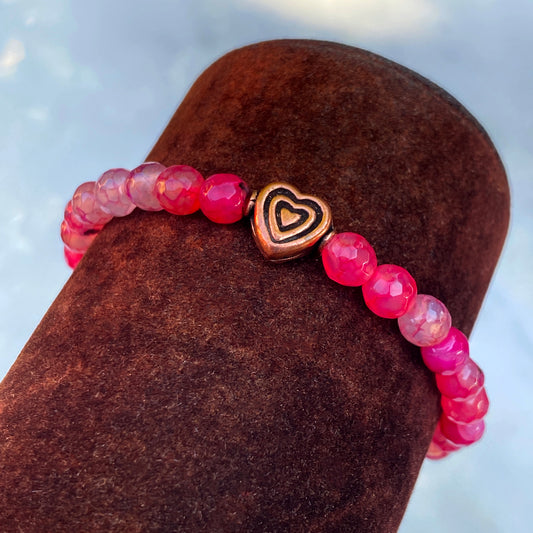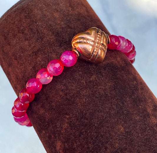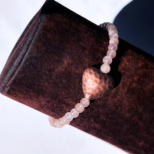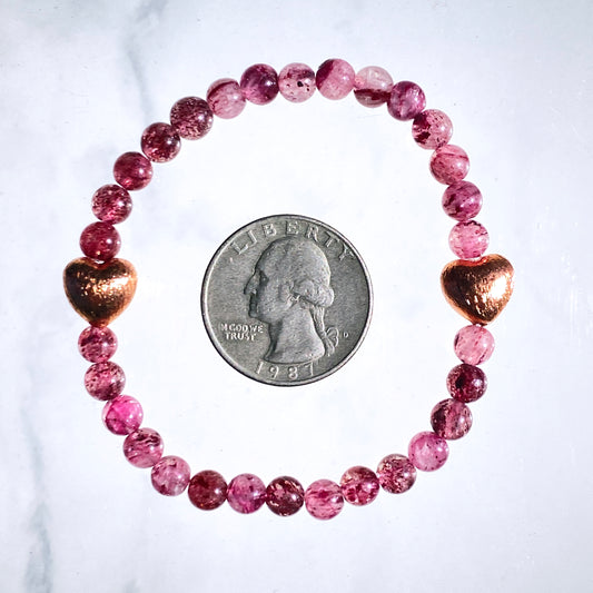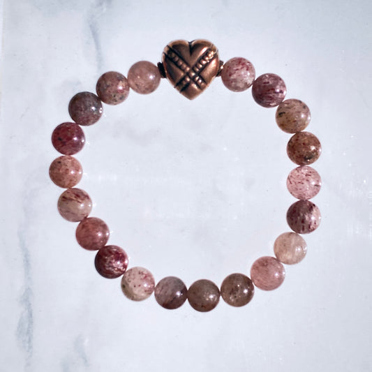 Strawberry Quartz gemstone and Copper Heart Bracelet