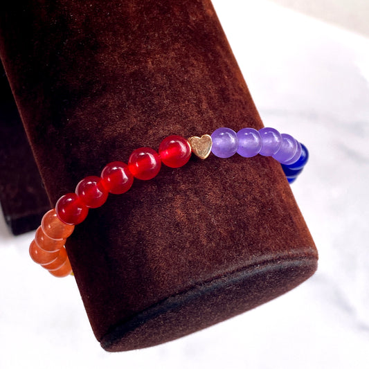 Rainbow of Jade gemstone Pride bracelet with gold heart Bracelet