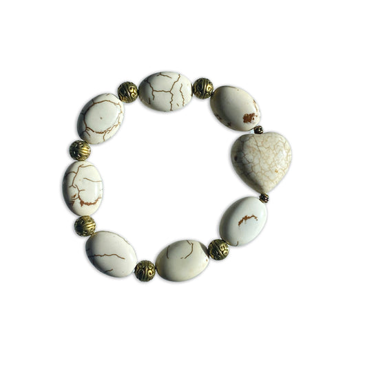 Brass and Clear Quartz gemstone Heart Stretch Bracelet