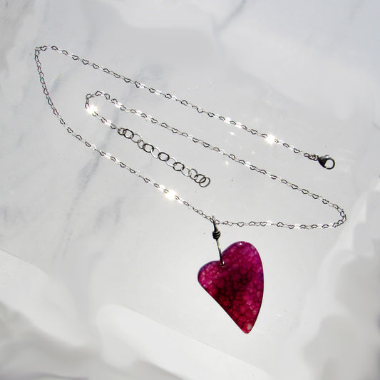 Pink Banded Agate gemstone Heart on pink agate necklace