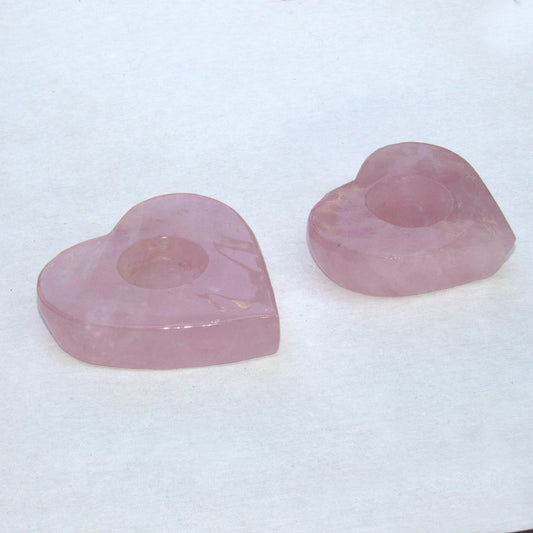 Genuine Rose Quartz gemstone carved Heart Candle Holder