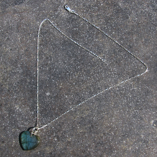 Labradorite Heart Hand Wrapped with Sterling Silver on Sterling Silver Chain