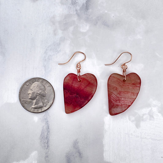 Rhodochrosite gemstone Hearts and 14 Kt Rose Gold fill Drop Earrings