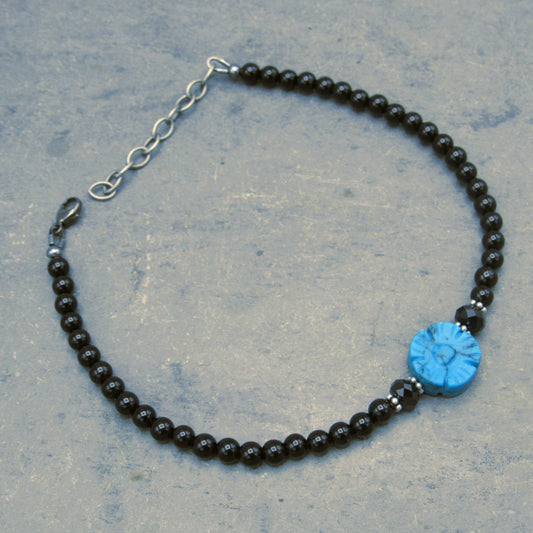 Blue Flower gemstone With Onyx and Black Spinel Anklet