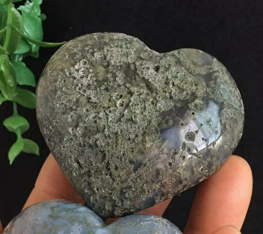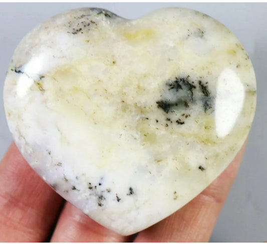 NATURAL Opal with aquatic plant QUARTZ CRYSTAL Polished Love Heart-Madagascar