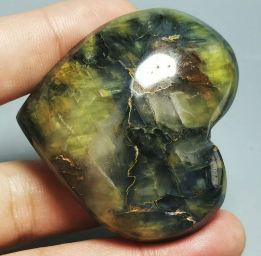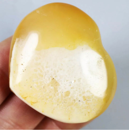 NATURAL Yellow PHANTOM MULTI-INCLUSIONS Rainbow CRYSTAL Heart Palm Stone
