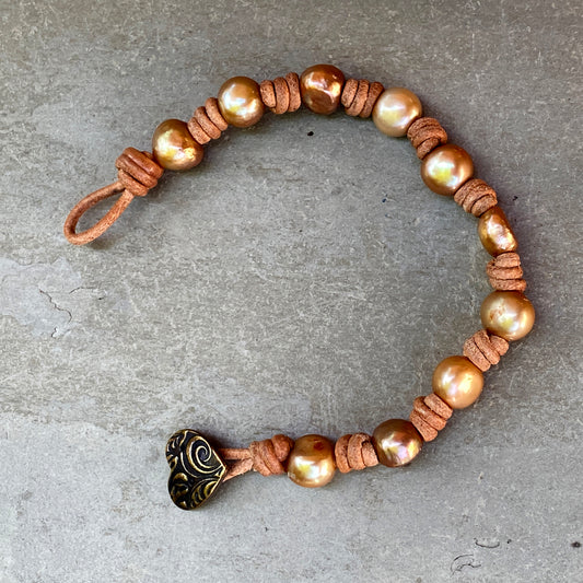 Freshwater Pearls Hand Knotted Leather with Heart Button Closure