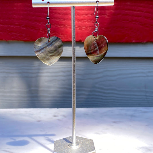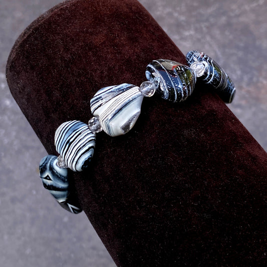 Zebra Fire Agate Gemstone Hearts, White Topaz, and Oxidized Sterling Silver