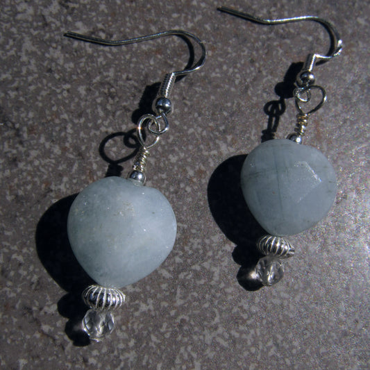 Large Aquamarine Hearts with Sterling Silver and White Topaz Drop Earrings