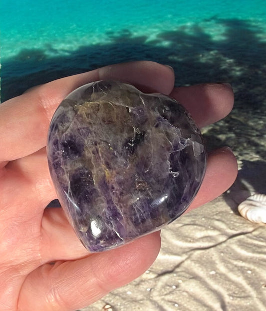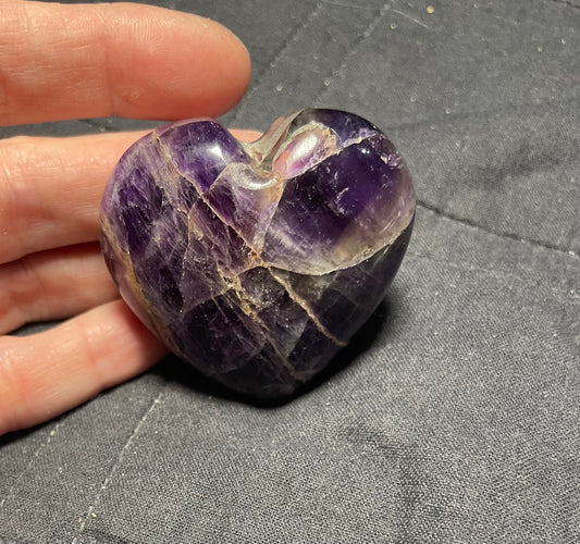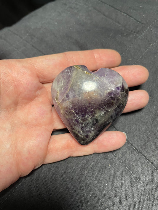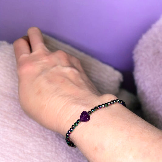 Dainty Amethyst gemstone Heart and Rainbow Hematite stretch bracelet