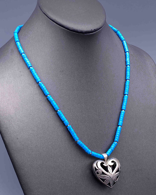 Turquoise gemstone and Silver Heart Pendant Necklace
