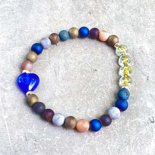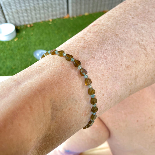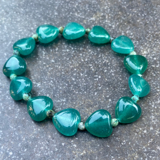 Green Onyx Hearts and Turquoise Stretch Bracelet