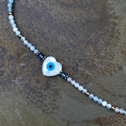 Evil Eye Heart with Aquamarine & Blue Topaz Gemstone necklace