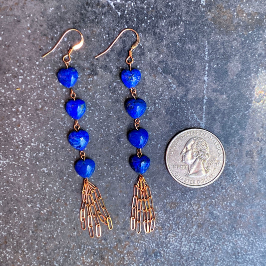 Lapis lazuli gemstone hearts and 14 kt rose GF drop earrings