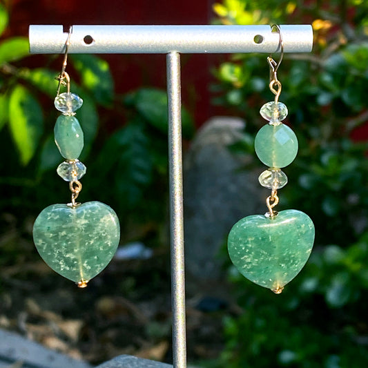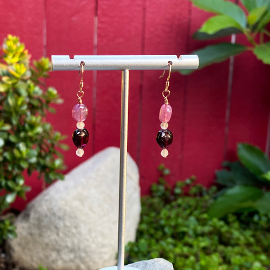 Gemstone earrings with Pink Sapphire, Rose Quartz & Garnet Heart