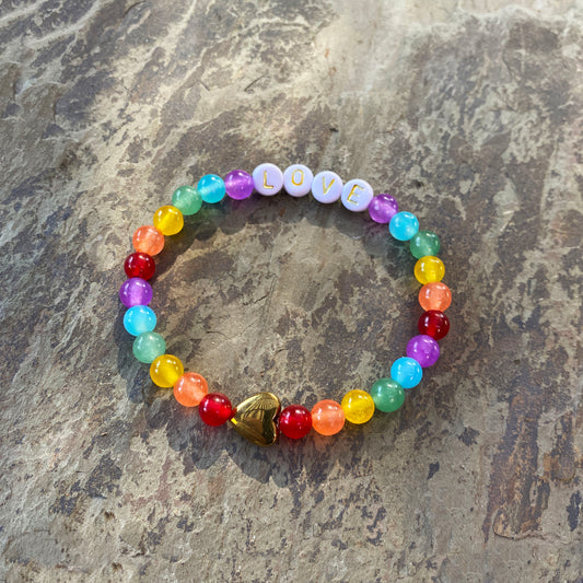 Women’s Rainbow LOVE Jade, Chalcedony and Aventurine Gemstone Bracelet
