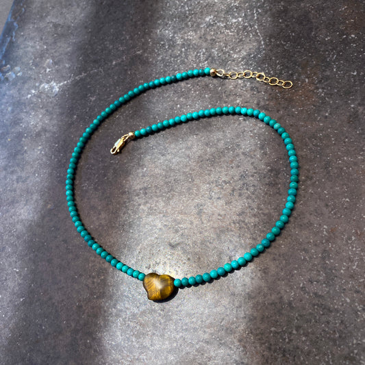 Women's Tiger Eye heart Pink Opal or Turquoise Gemstone beaded Necklace