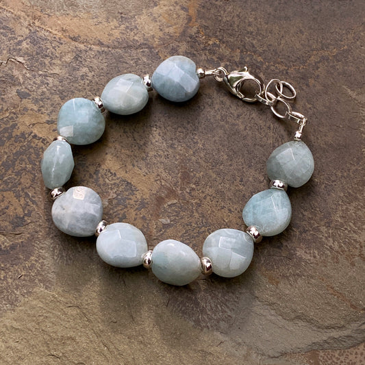 Women's Aquamarine hearts and sterling Silver lobster Clasp Bracelet