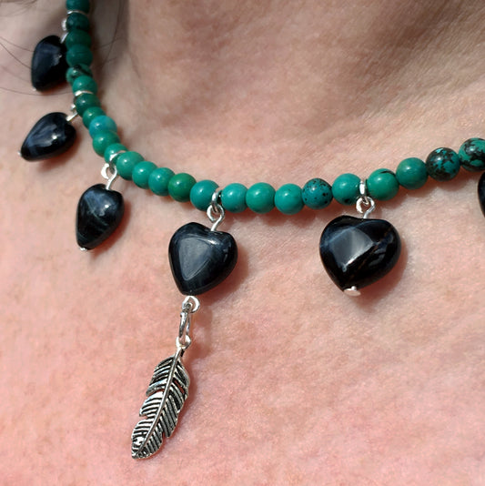 Women's African Turquoise & green Onyx heart "SHINE" Gemstone Bracelet