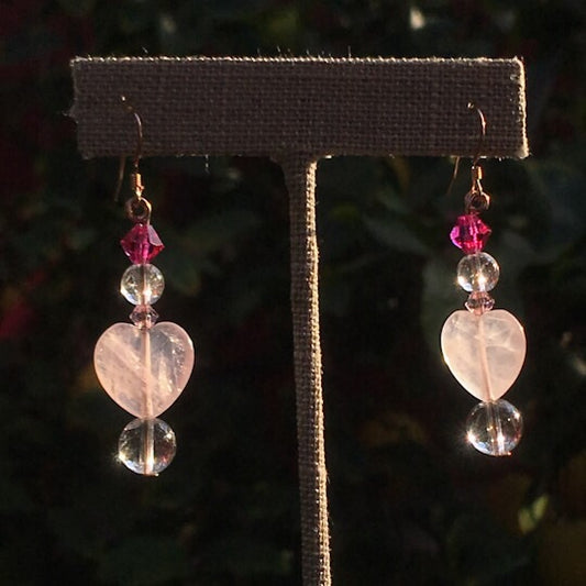 Rose quartz, Clear Quartz, and Swarovski crystal with rose gold filled drop earrings