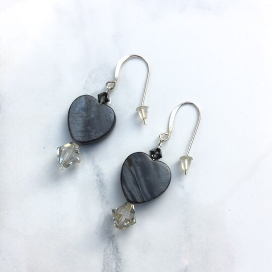 Mother of Pearl gray Heart and Swarovski sterling silver earrings