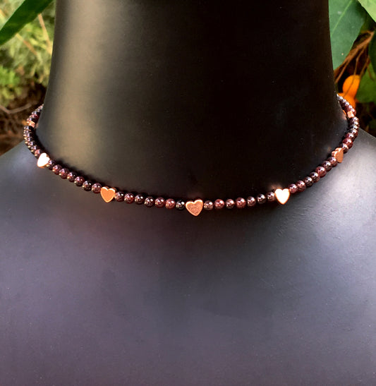 Black Skull & Crystal with Hematite gemstone heart Necklace