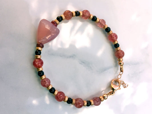 Pink Chalcedony heart, natural Cherry Quartz Gemstone bracelet