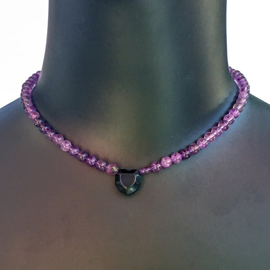 Women's Amethyst and Onyx Heart Gemstone Necklace