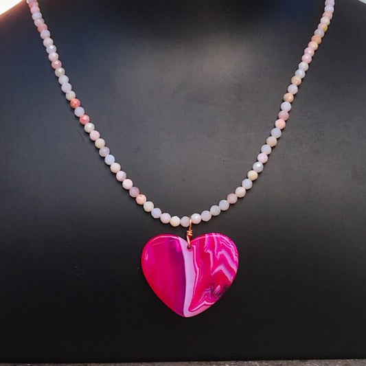 Women’s Pink Agate Heart Pendant & Pink Opal Gemstone Necklace
