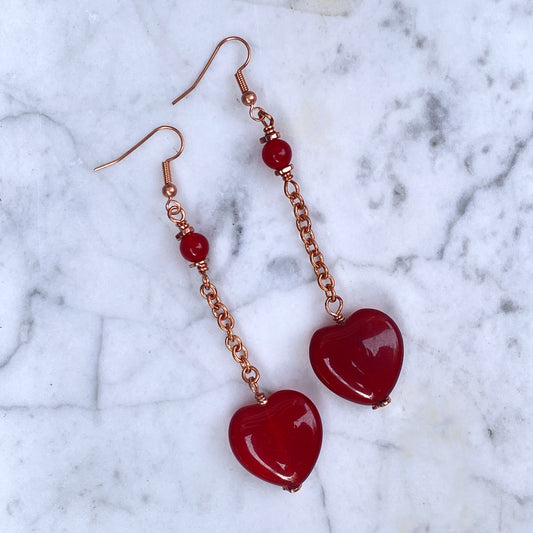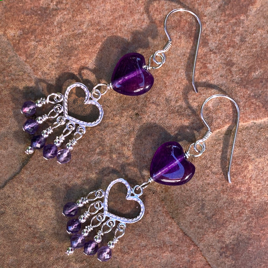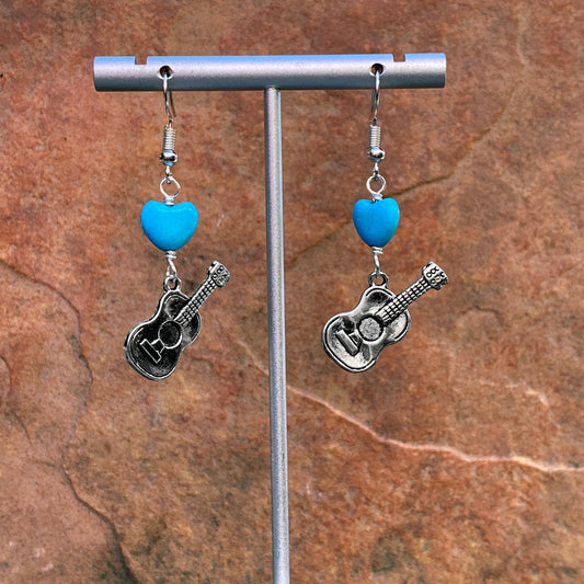 Turquoise and Sterling Silver Dangle Heart Earrings