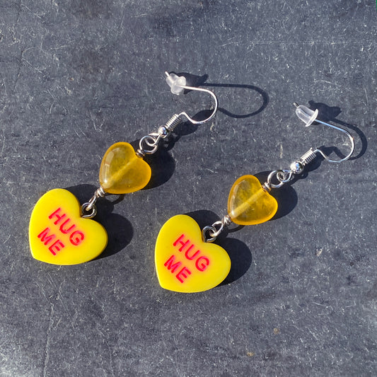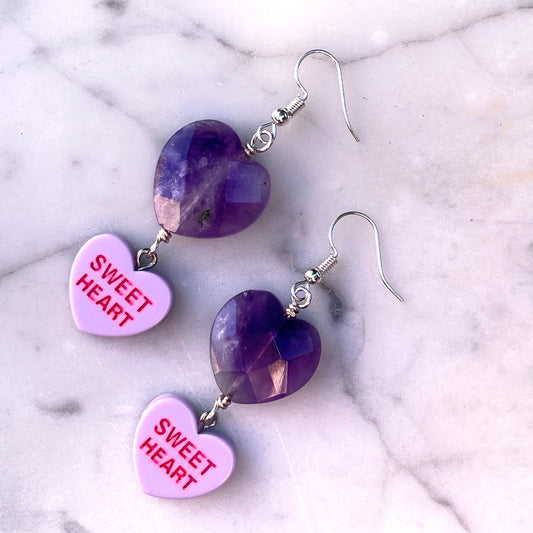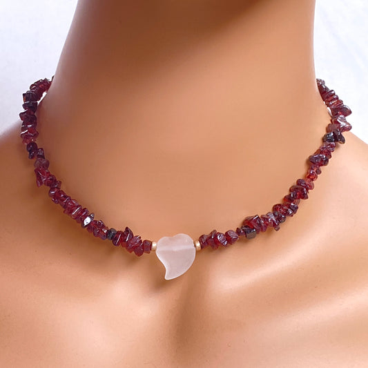 Garnet Gemstone hearts with Copper Circle with Cupid Imprint Dangle earrings
