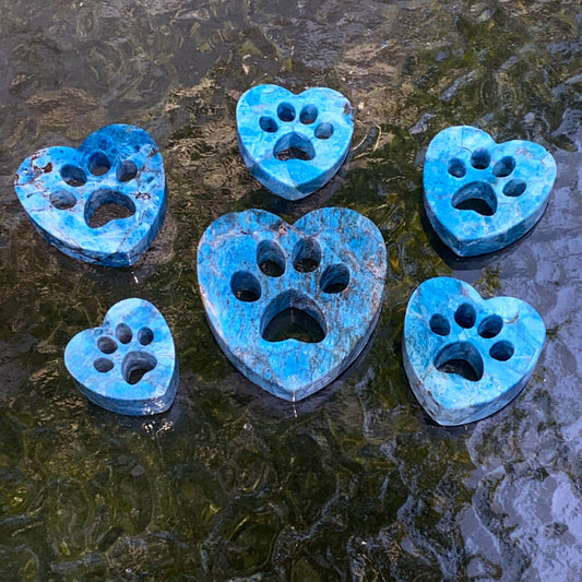 Natural Apatite Gemstone Blue Puppy Paw Cut-out