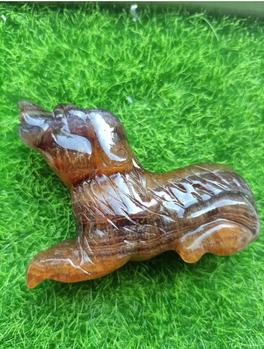 Natural Hand Carved Quartz Crystal rainbow fluorite gemstone Dog
