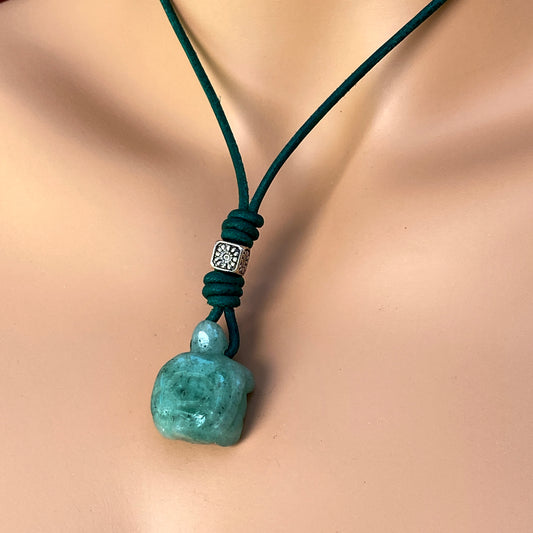 Jade Turtle gemstone on green leather with Sterling Silver