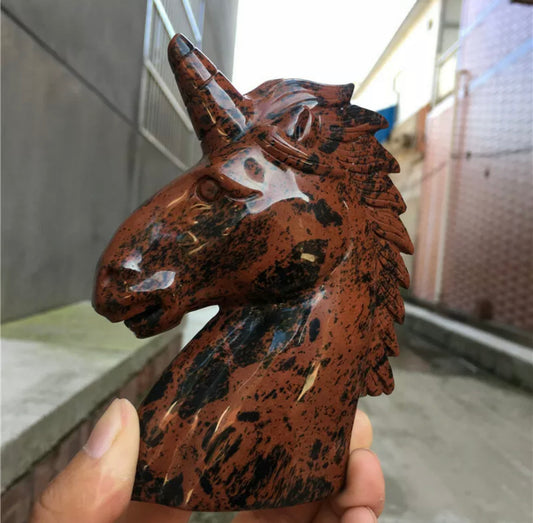 Natural red Mahogany Obsidian gemstone unicorn