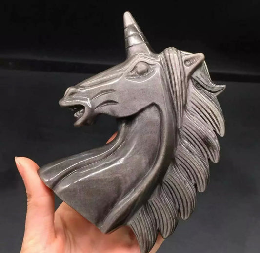 Natural Silver Obsidian Quartz Carved Unicorn