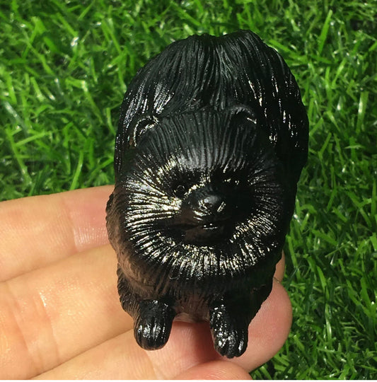 Chow dog Carved Natural Black Obsidian gemstone