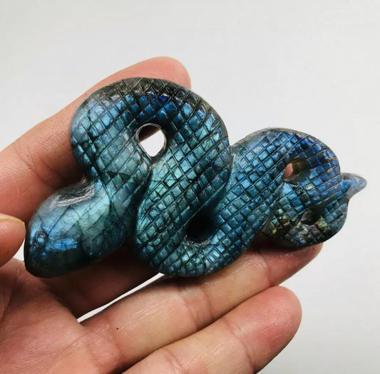 Natural labradorite gemstone crystal hand-carved snake 75g