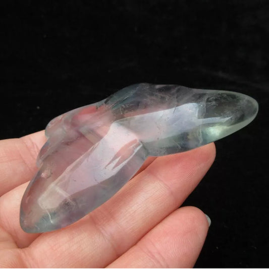 Natural Transparent green fluorite gemstone crystal Hand-carved butterfly