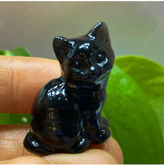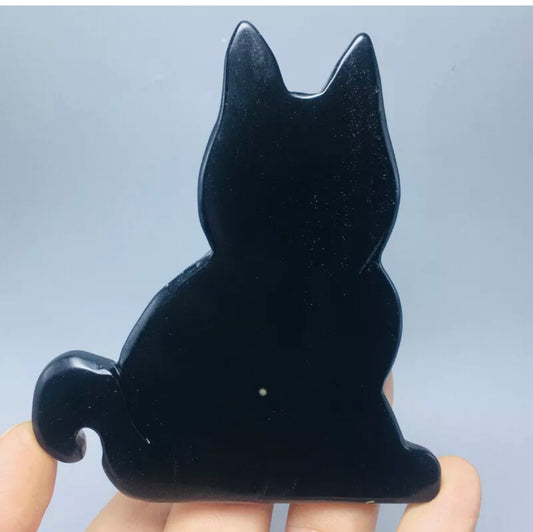 Natural Silver Obsidian gemstone Kitty Cat Crystal Figurine